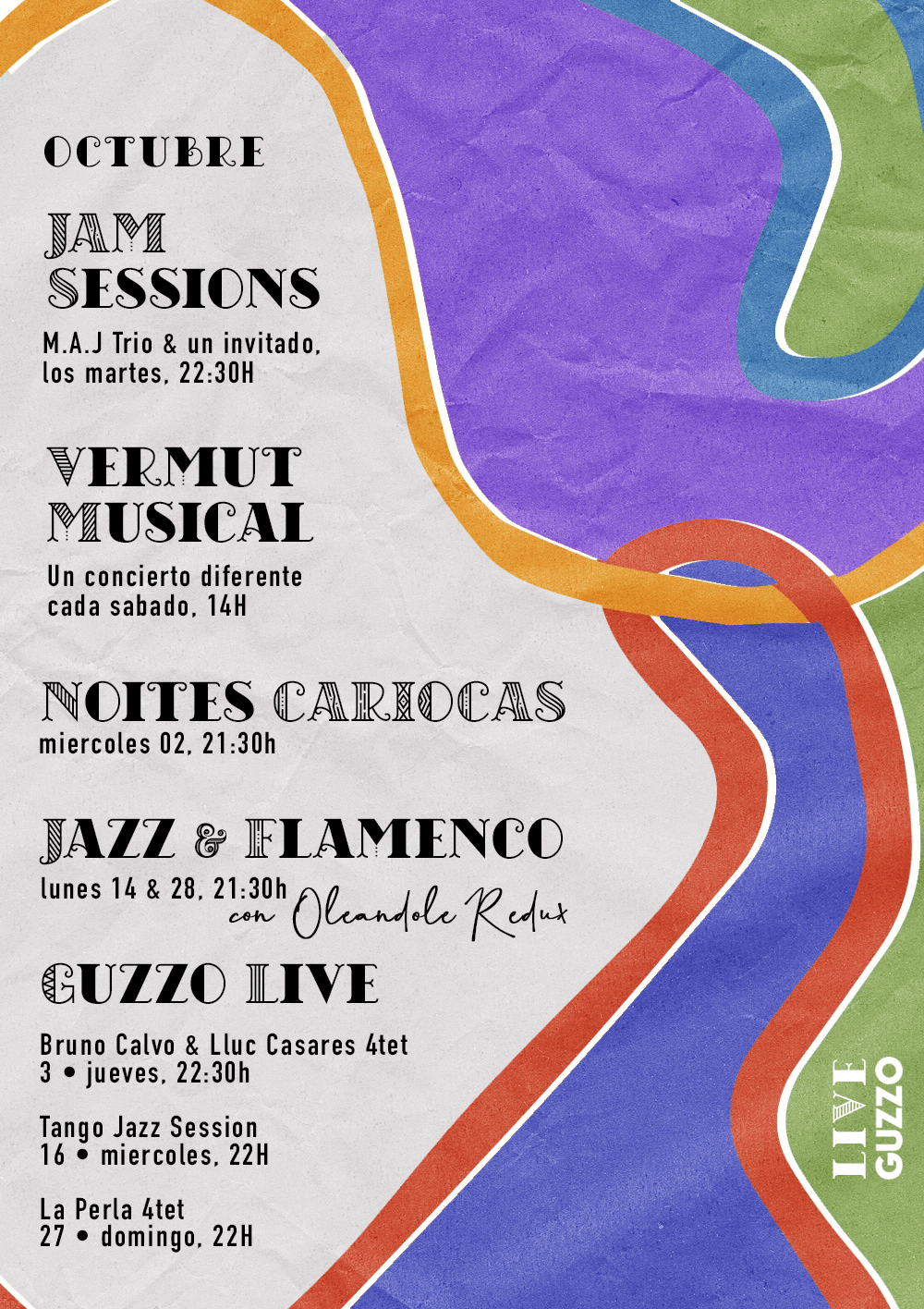 Jazz, Flamenco, Bossa Nova, Swing, Afro, Latin… Para Gustos… GUZZO ! Toda la información sobre nuestras citas LIVE de Octubre en nuestros eventos de Facebook… Welcome!