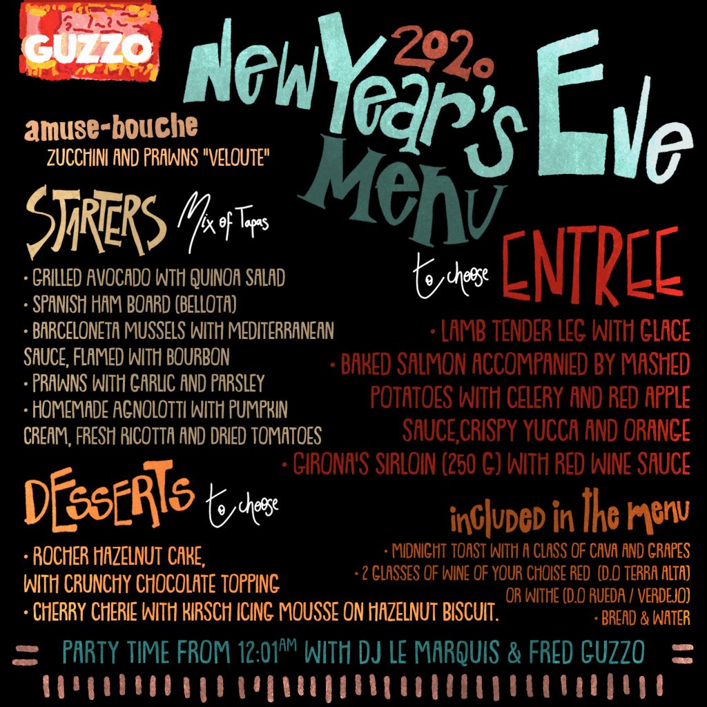 La nochevieja empezará a las 20h y para la ocasión ofreceremos un menú pensado especialmente para satisfacer todos los caprichos acumulados durante el año: