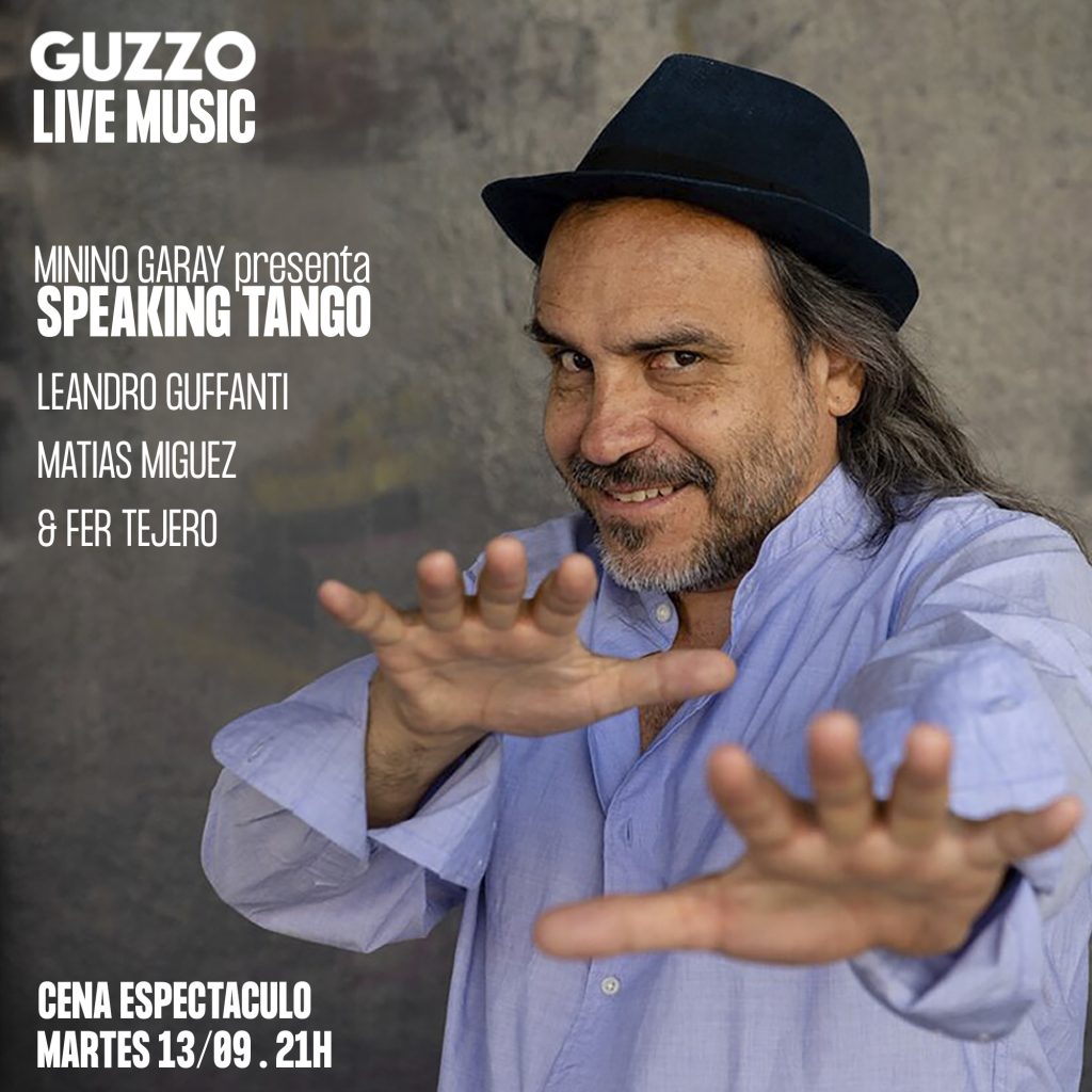 Recibimos al gran percusionista Argentino afinando en Francia, Minino Garay, presentando su proyecto «Speaking Tango» de la mano de Leandro Guffanti, al sax, Matías Miguez al bajo & Fernando Tejero, al piano! Como más nos gusta, mezclamos la música en directo con nuestra comida 100% hecha en casa, en una cena espectáculo imperdible.